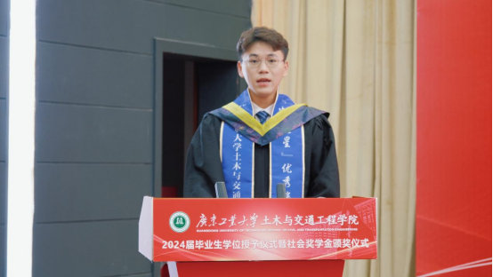 同窗互助,与友共勉。2024届优秀毕业生、2020级道路桥梁与渡河工程专业本科生胡子豪分享了在广工的求学经历和感悟。他表示,自己从迷茫到坚定,从陌生到熟悉,愈发享受大学的生活,愈发热爱这方土地,将在崭新的人生征途上踔厉奋发,笃行不怠,为祖国作贡献,为母校添光彩!