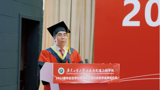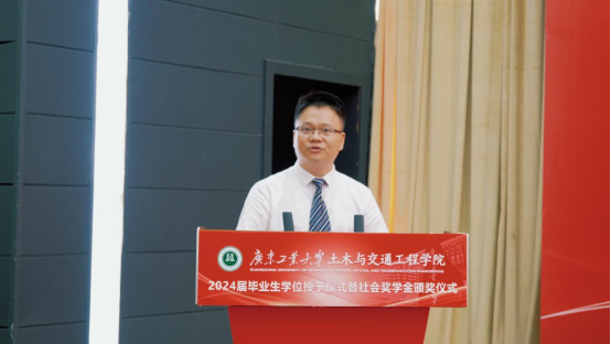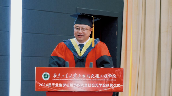 向全体毕业生同学们致以最热烈的祝贺,他向即将开启人生新阶段的毕业生赠言,勉励同学们扎根一线、坚持拼搏的精神,“保持最佳心态,寻求最好状态,展现最佳姿态,”在今后的人生中砥砺奋进、勇毅前行。