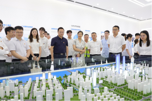 首先,李龙带领师生一行参观了中建四局智慧建造馆。智慧馆以科技创新为引领,全方位展示了四局科创大厦项目在贯彻新发展理念,塑强新动能新优势的综合实力。
