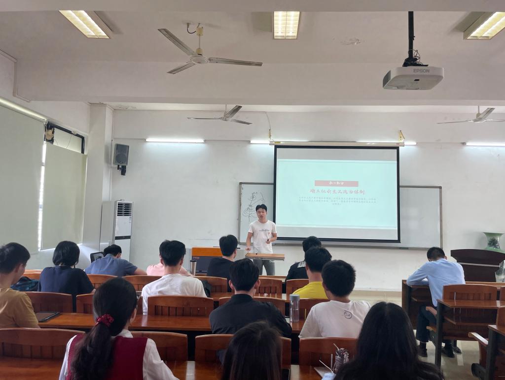 第二组的黄泽鹏同志,以“党支部在军队建设中的作用”为主题,简要介绍了关于抗美援朝战争的这段党史。通过抗美援朝战争艰难的作战条件与两军悬殊的军事力量对比,再以简洁形象的图形介绍了志愿军的胡迪尔战术。最后,他讲解党支部在志愿军军队建设中的作用,并解释了党支部是如何让人民军队成为一支空前绝后具有信仰的军队。