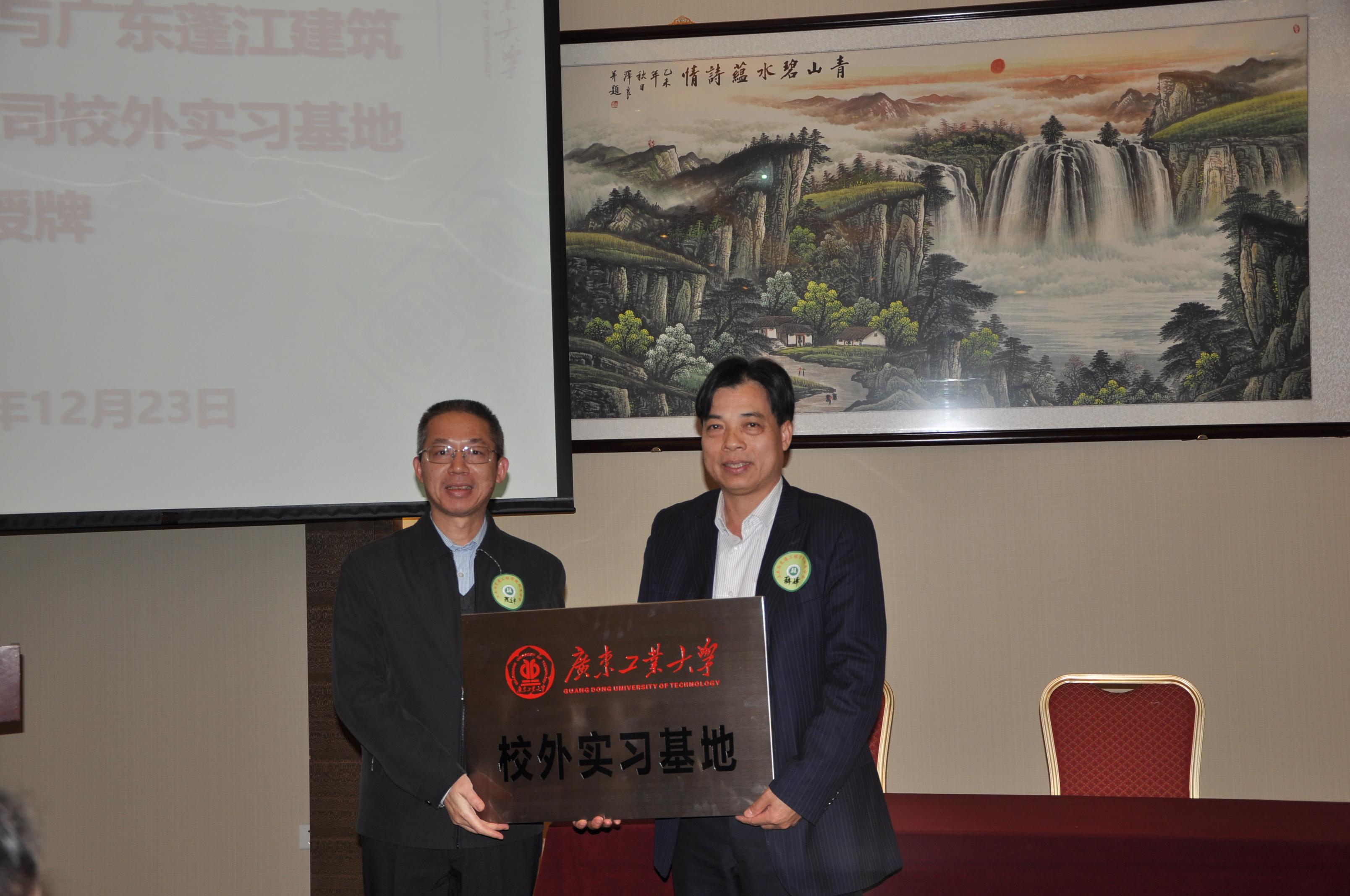 大会上举行了校外实习基地签约及授牌仪式。学校教务处处长李丽娟教授代表学校与江门市建设监理顾问有限公司总经理黄国生、广东蓬江建筑设计院有限公司院长薛峰、江门市交通工程建设有限公司副总经理廖志聪进行签约仪式;陈立中副校长向江门市建设监理顾问有限公司、广东蓬江建筑设计院有限公司、江门市交通工程建设有限公司授校外实习基地牌匾,黄国生先生、薛峰先生、廖志聪先生代表公司接牌。