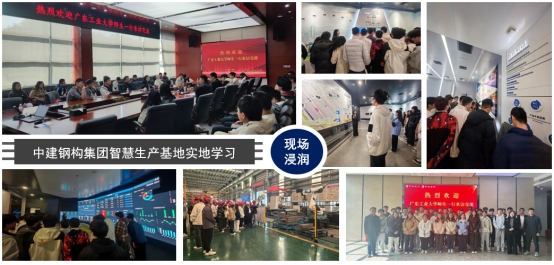 组织师生赴惠州中建钢构集团智慧生产基地实地参观。在智能下料、机器人焊接及数字化装配等核心车间,同学们近距离观摩了全流程数字化生产及工业机器人协同作业。这种零距离的产业浸润教学让学生切身体会到智能建造技术赋能传统建筑业的变革,坚定了深耕专业的信念。